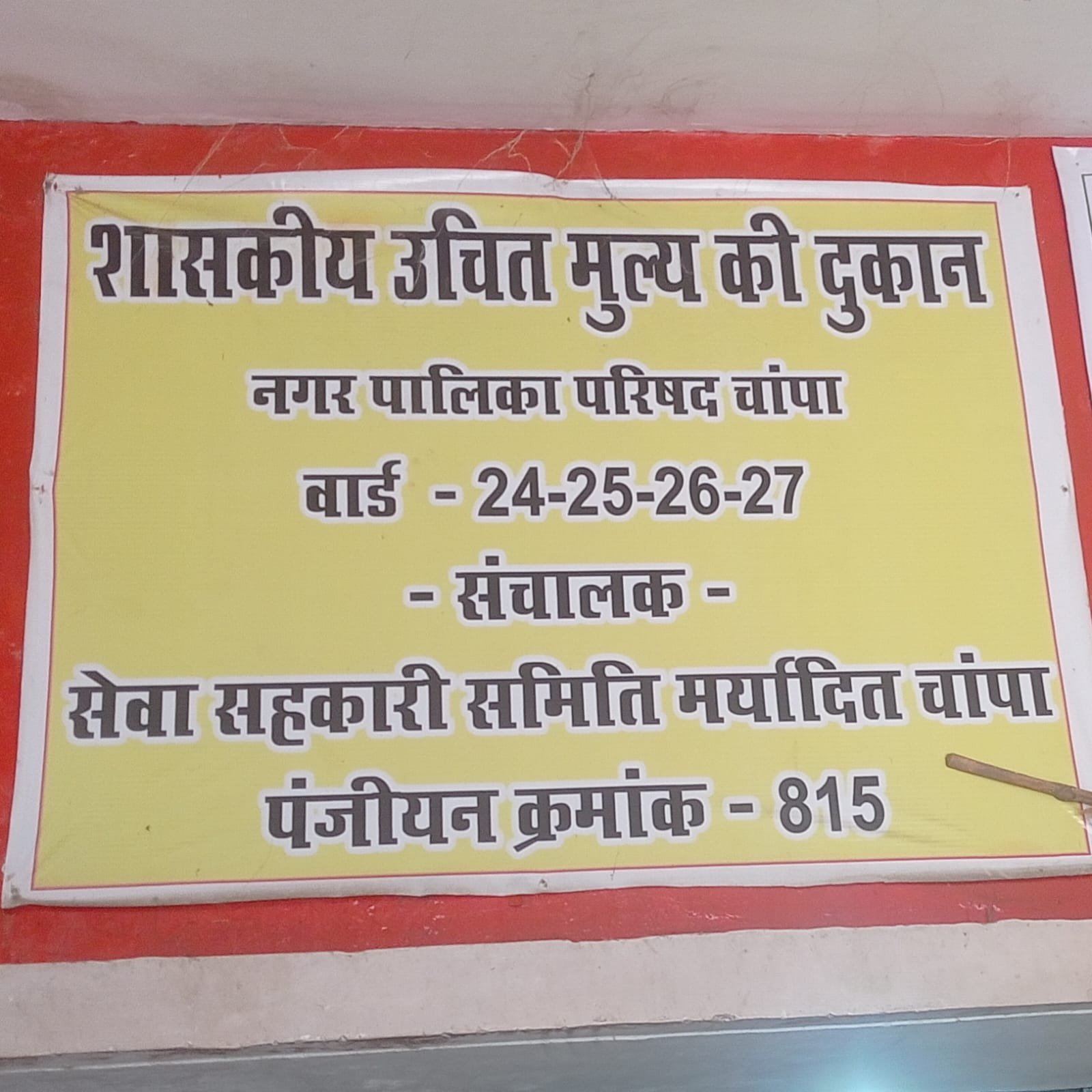 *चांपा शहर में शासकीय उचित मूल्य दुकान पंजी क्रमांक 815 मे अनियमितताओं के आरोप नियमों की खुलेआम धज्जिया उड़ाया जा रहा है*