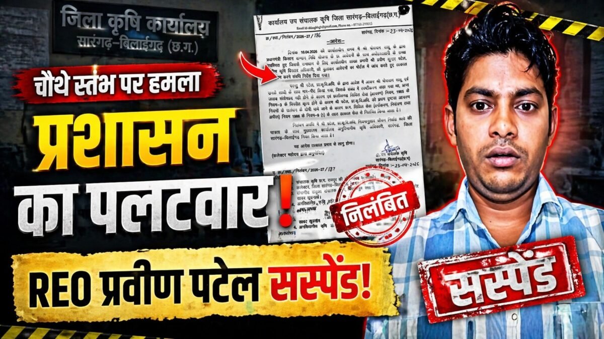 सारंगढ़-बिलाईगढ़ / जिला कृषि कार्यालय में एक मामूली शिकायत ने ऐसा विस्फोट किया कि सीधे निलंबन तक मामला पहुंच गया और लोकतंत्र के चौथे स्तंभ पर हाथ उठाने वाले ग्रामीण कृषि विस्तार अधिकारी प्रवीण पटेल की कुर्सी चली गई, पूरा घटनाक्रम तब सामने आया जब पत्रकार पोश राम साहू एक पीड़ित किसान की प्रधानमंत्री किसान सम्मान निधि योजना में अटकी राशि की शिकायत को लेकर कार्यालय पहुंचे, मकसद था तकनीकी कारण जानना और समाधान निकलवाना, लेकिन बातचीत के दौरान हालात अचानक बिगड़ गए, प्रत्यक्षदर्शियों के अनुसार अधिकारी प्रवीण पटेल ने अपना आपा खो दिया, पहले तीखी बहस हुई फिर अभद्र भाषा का इस्तेमाल हुआ और देखते ही देखते मामला मारपीट तक पहुंच गया, सरकारी दफ्तर के भीतर हुई इस घटना ने वहां मौजूद लोगों को स्तब्ध कर दिया और पूरे प्रशासनिक सिस्टम पर सवाल खड़े कर दिए, घटना की खबर तेजी से फैली और मामला जिला प्रशासन के शीर्ष तक पहुंचा, कलेक्टर डॉ. संजय कन्नौजे ने बिना समय गंवाए पूरे मामले को गंभीरता से लिया, तत्काल जांच के आदेश दिए और साफ संदेश दिया कि अनुशासनहीनता और सत्ता के दुरुपयोग पर अब जीरो टॉलरेंस रहेगा, जांच में आरोप सही पाए गए तो उप संचालक कृषि विभाग ने कलेक्टर की मंजूरी के बाद छत्तीसगढ़ सिविल सेवा (आचरण) नियम 1965 के उल्लंघन और सेवा आचरण के विपरीत व्यवहार के आधार पर प्रवीण पटेल को छत्तीसगढ़ सिविल सेवा (वर्गीकरण, नियंत्रण तथा अपील) नियम 1966 के तहत तत्काल प्रभाव से निलंबित कर दिया, इस कार्रवाई के बाद जिले के पत्रकारों में संतोष और राहत का माहौल है और इसे केवल एक प्रशासनिक कार्रवाई नहीं बल्कि लोकतांत्रिक मर्यादा की रक्षा के रूप में देखा जा रहा है, इस पूरे घटनाक्रम ने साफ कर दिया है कि सरकारी पद अब दबंगई का लाइसेंस नहीं है और अगर कोई जनसेवक जनता या पत्रकार से अभद्र व्यवहार करता है तो कार्रवाई तय है—“कानून के सामने हर कुर्सी छोटी है।”